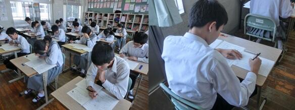 今回のテストは、入学してからこれまでに学習した内容の定着度を量るものです。当然、定期テストと違って範囲も広く、生徒は解答に苦労していたようです。中には、他人の紹介を解答しなくてはならない問題もあり、難易度の高い表現力を問う問題も出題されていたようです。英語担当職員も、「難しかったですね。」と言っていました。