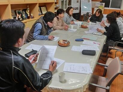 PTA活動の一環として、生徒の力走をねぎらうための豚汁と3年生の進路目標達成を願うための餅つき(紅白餅)を計画しています。大会当日までの、これらの準備について、日程、材料、役割分担など協議したところです。