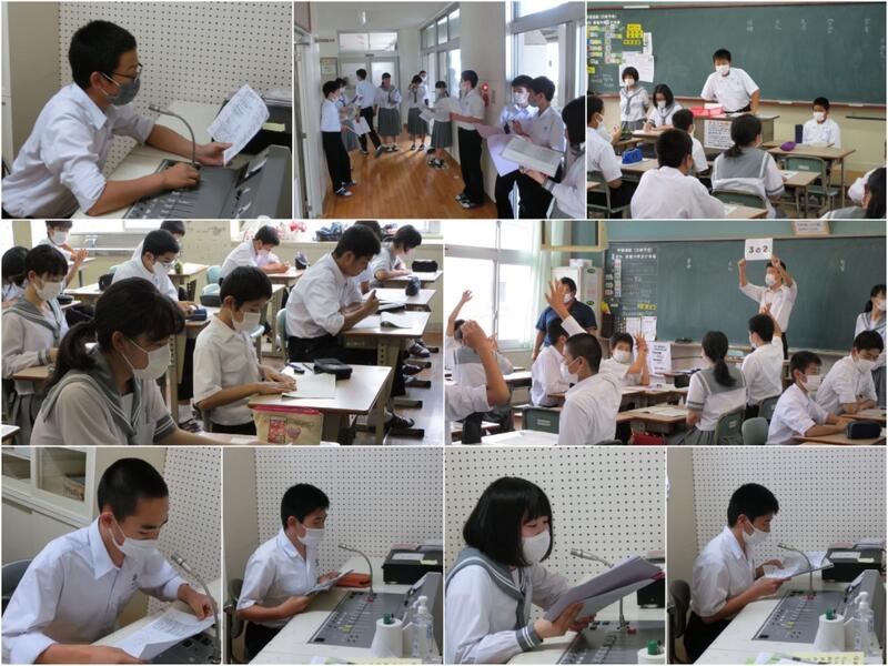 7月8日(水)、3年生の英語の授業ではMy Project7「あの人にインタビューをしよう」という単元のインタビュー発表をしました。事前の授業で、インタビューのやり取りの原稿を考え、練習してきました。