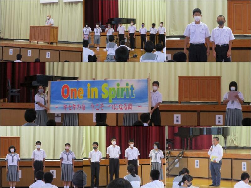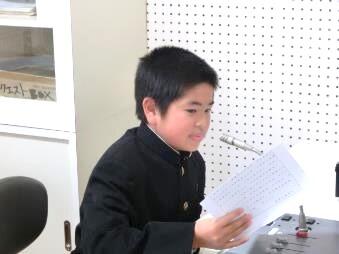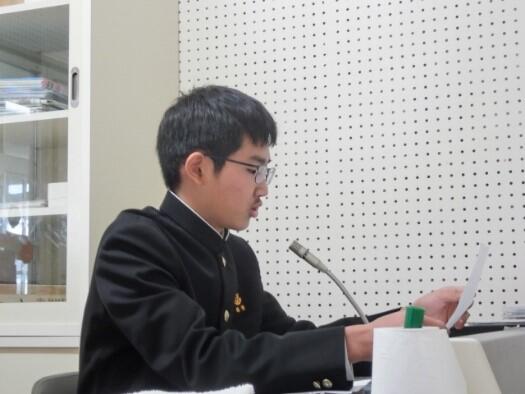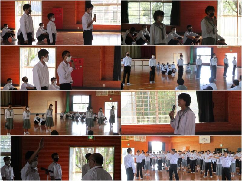 代表で抱負を述べたのは、1年生が松元聖歩さん、2年生が戸越柊惺さん、3年生が日髙愛さん、生徒会が福重敦基さんでした。それぞれの立場で、これまでの反省をもとに、3学期へ向けて抱負を力強く述べてくれました。素晴らしい発表でした。