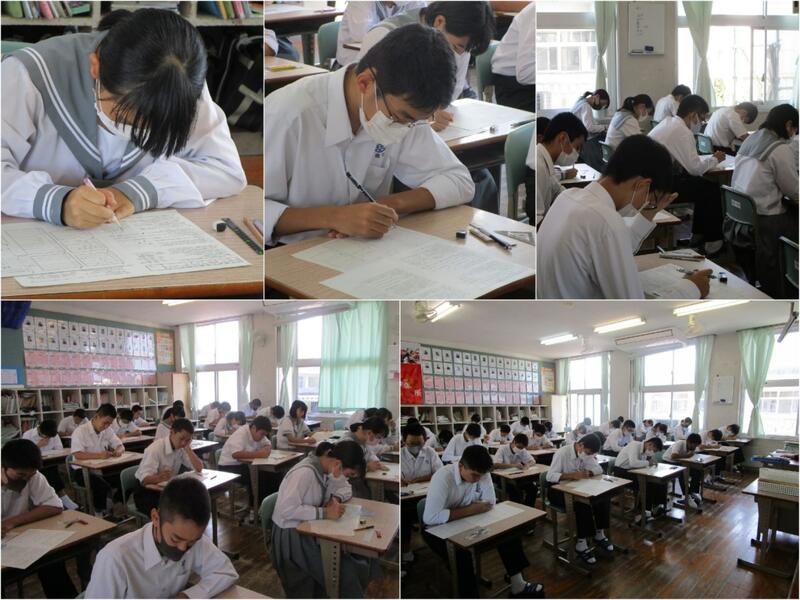 11月24日(火)、期末テストを実施しました。前回の中間テストからまだ1ヶ月半程度ということで、テスト範囲は狭かったかもしれませんが、今回は国社数理英の5教科だけでなく、保体・技術・家庭を加えた8教科での実施となります。5教科だけではなかったので、勉強するところも多かったと思いますが、テストに向けてしっかり勉強はできたでしょうか?テストはどのクラスも真剣に取り組んでいました。勉強の成果がでるといいですね。テストは明日まであります。テストの出来も気になるところですが、明日のテストに向けて気持ちを切りかえてがんばってください。