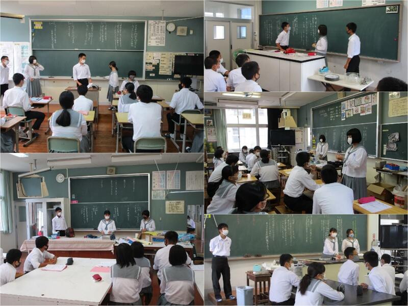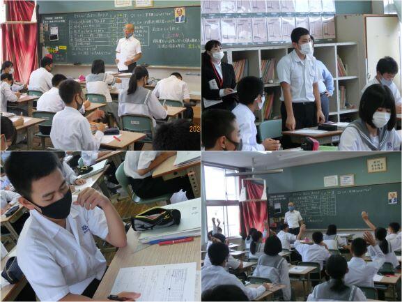 7月2日(木)、2年生の総合的な学習の時間では、職業体験学習ということで日章学園から先生を招き、様々な体験をさせていただきました。本来、職場体験学習では各事業所に出向き、様々な仕事を体験するものですが、新型コロナウィルスの感染予防のため実施できませんでした。しかし少しでも生徒に職業観を養い、自分の将来を考えるための1つのきっかけになればと思い、このような形で実施しました。オムレツの作り方を学ぶコース、電気に関すること、電卓を使った演習、パンクを見つける活動。生徒達の興味も非常に高くとても意欲的に活動していました。オムレツは調理の先生が実際に教えてくださり本場のふわとろオムレツを作ることができました。電気のコースでは静電気のしくみを理解し、なぜスマホがタッチできるかを理解することができました。各コースでとても楽しい演習が行われ、大変充実した学習ができました。少しずつ自分の進路について考え、仕事や職種について学んでいきましょう。