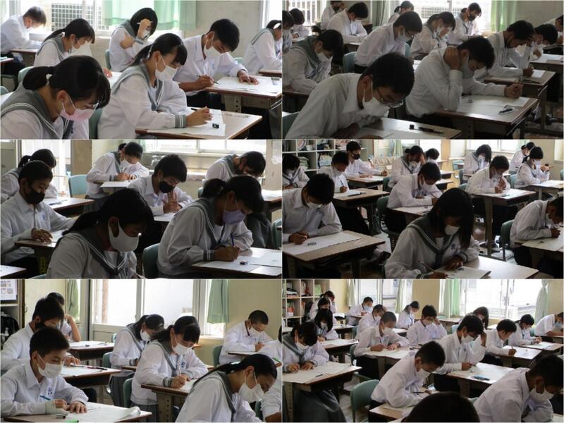 6月25日(木)、期末テストがありました。今日と明日の2日間で行い、今日は3教科、明日は2教科実施されます。今年は新型コロナウィルスによる休校の影響で、中間テストがなくなり、今回の期末テストが今年度初の定期テストとなりました。1年生にとっては最初のテストということもあって緊張している様子も見られました。またどの学級も集中してテストに取り組んでいました。範囲が広いこともありテスト勉強も大変だったと思いますが、今日の出来はどうでしたか?テストは明日まであります。最後まで油断せずにテスト勉強を頑張って下さい。
