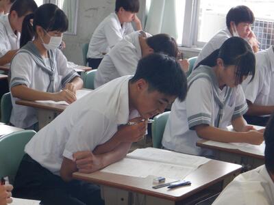 9月2日(火)・3日(水)の2日間、夏休み明けの実力テストを実施しました。今回は、夏季休業中に取り組んだ課題の成果がしっかりと身に付いたかを試す大事なテストです。特に、3年生にとっては、三者相談に際に話し合われた苦手教科を克服し、目標点数を達成できることを期待したいです。