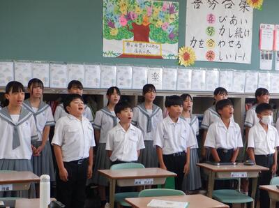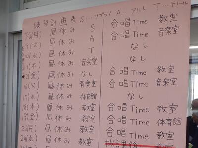 9月8日(月)から、約1か月後の紫峰祭の中で行われる合唱コンクールに向けて、各クラスの練習が、いよいよ本格的に始まりました。それに併せて、帰りの会前の30分間を「合唱タイム」として設定し、練習時間の確保を図ります。「合唱タイム」における練習をとおして、クラスの団結力が一段と強まることを期待したいです。