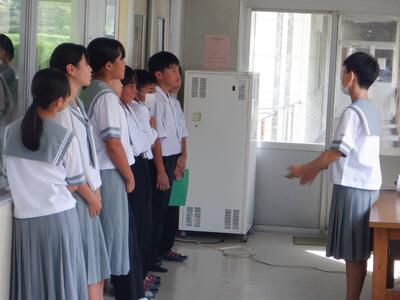 9月11日(木)、第2学年の総合的な学習の時間における防災教育の一環として、都城市消防局と消防用設備事業所エースサービスに御協力いただき、「煙体験学習」を実施しました。