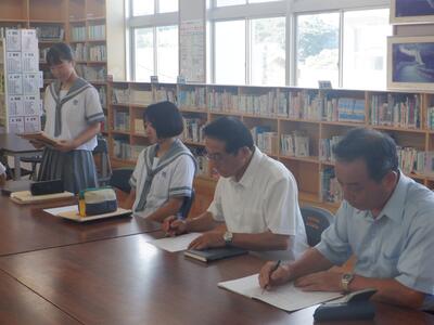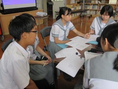 9月9日(火)、生徒会役員(執行部)と学校運営協議委員の方々が集まり、「中学生が地域のためにできること」をテーマに意見交換会を行いました。