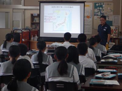9月10日(水)、総合的な学習の時間に、都城市役所 危機管理課の防災専門員の方を講師としてお招きし、防災講座を実施しました。