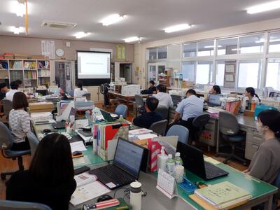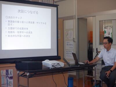 今回は、8月6日(水)~8日(金)の3日間、茨城県つくば市で開催された中央派遣研修を受講した研究主任が、研修で学んできたことを協議や演習等を交えながら、伝達してくれました。全職員が、「主体的な学びとは?」を改めて問い直すことで、2学期からの授業に良い変化がもたらされることが期待できそうです。