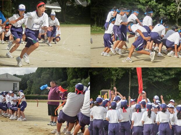 9月3日(月)の6校時、全校生徒で体育大会の練習をしました。練習内容は、応援、競技役員の入退場、競技役員の動きを確認しながらの特選100m、1年生団技、全校綱引きでした。
