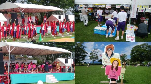 この日は、前日まで心配された天気も回復し、午後から大勢のお客様で賑わっていました。13時から始まったステージでは、3年生がオープニングを飾り、体育大会でも披露したソーランを披露しました。吹奏楽部も3曲の演奏でしたが、会場を盛り上げてくれました。その後は、学校支援ボランティアの方々に協力して、お茶やジュース、かき氷、赤い羽根共同募金の仕事をボランティアで頑張ってもらいました。また、かかし館には多くの生徒の美術や書道の作品を展示していただく他、生徒会(中央委員会)が製作したかかしも展示していただき、かかしは特選に選ばれました。
