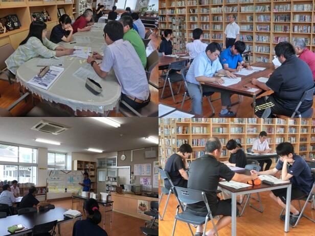 夏休み中ではありますが、学校の先生たちも勉強しています。8月1日(水)、登校日の午後、山田総合センターで、中霧島小学校、山田小学校、木之川内小学校、山田中学校の先生方が一同に会し、合同研修会を開きました。