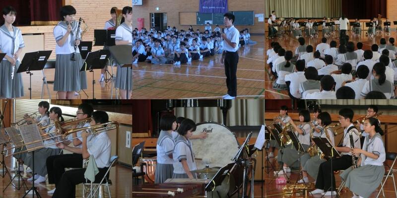 7月16日(火)、宮崎県吹奏楽コンクールに出場する本校吹奏楽部の壮行会を開きました。コンクールに臨むにあたっての意気込みを代表生徒が力強く語り、教頭先生(校長先生の代理)、生徒会長から激励のことばがありました。その後、本番で演奏する課題曲と自由曲を披露してもらいました。