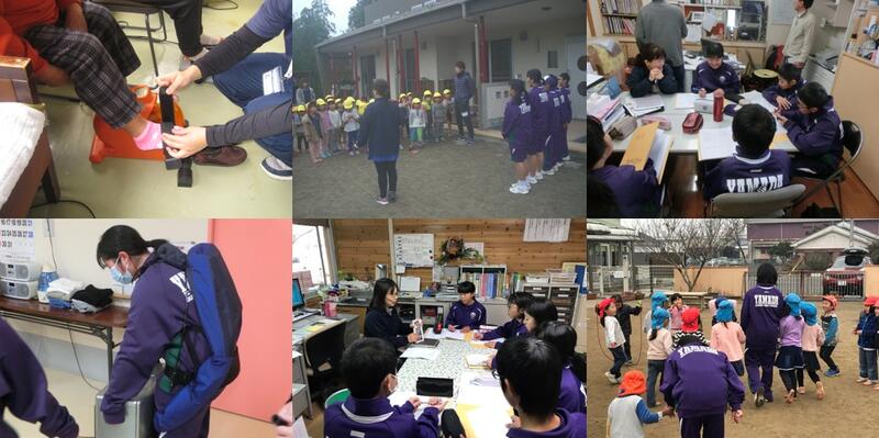 各事業所では、施設について詳しく説明を聞き、記録をしっかりとっていました。また、高齢者の疑似体験や園児との交流など貴重な体験をさせてもらったようです。学校では、記録をもとに写真も合わせて、報告書を作成します。明日は、学校で高齢者や車イスの体験学習をします。こちらも頑張りましょう。