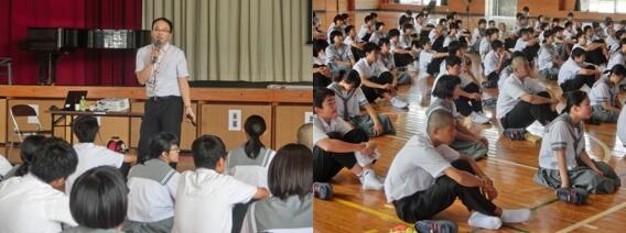 7月19日(木)、都城保健所から講師をお招きし、薬物乱用防止教室を開きました。暑い体育館での講話となりましたが、生徒は頑張って話を真剣に聞いていました。