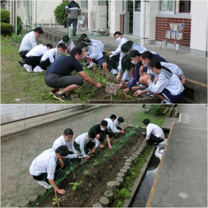 学校では緑のカーテンとしてゴーヤを植えています。昼休みには生徒達がボランティアとして雑草抜きをしてくれています。まだ小さいですが、夏には立派に成長して教室が少しでも涼しくなればいいですね。明日の土日でしっかり休養をとって、来週からもしっかり頑張っていきましょう。