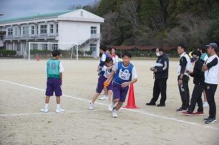 駅伝では、自分の学級に誇りをもち、たすきを必死につないでいました。