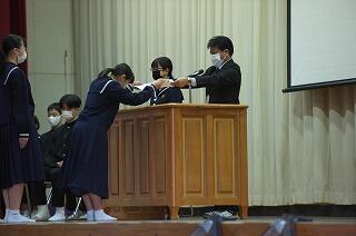 これまで生徒会活動の運営に尽力してきた皆さんに感謝状を授与し、新役員の皆さんに任命状を授与しました。