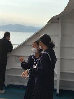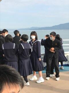 バスの移動中はガイドさんの話に耳を傾け、フェリーの移動では新鮮な景色に歓声があがりました!現在、フェリーを降車して長崎県に到着です!