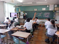 大型テレビやICTを活用することで、社会減少が一番多いことに気づき、「なぜ、京都市は転出者が多いのか」と発展性をもちながら考えていました。また、端末機(クロムブック)に自分の考えを入力した後、グループ内で互いに共有し、自分の考えを広げたり高め合ったりしました。