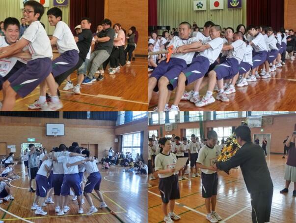 授業参観、学級懇談も多くの保護者の方に出席していただきましたが、綱引き大会はさらに人数が多くなったようです。どれも白熱した試合でしたが、やはり3年生。決勝は3年生の学級同士の試合となりました。お互いのプライドがぶつかり合う白熱した試合となりましたが、わずかな差で3年1組の優勝となりました。