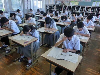 6月25日、26日の2日間で1学期期末テストを実施しました。実施教科は、全学年、国語、社会、数学、理科、英語、保体の6教科です。