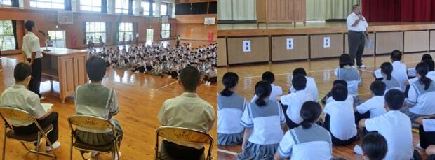 校長先生は、日本サッカー協会やスーパーボランティアの尾畠さんを取り上げながら、夢や努力をもつことの大切さや尊敬される学校や生徒になろうと話をされました。派手ではなくても、小さな事でも続けていくことが大切です。それが、他から尊敬される生徒、学校になっていきます。