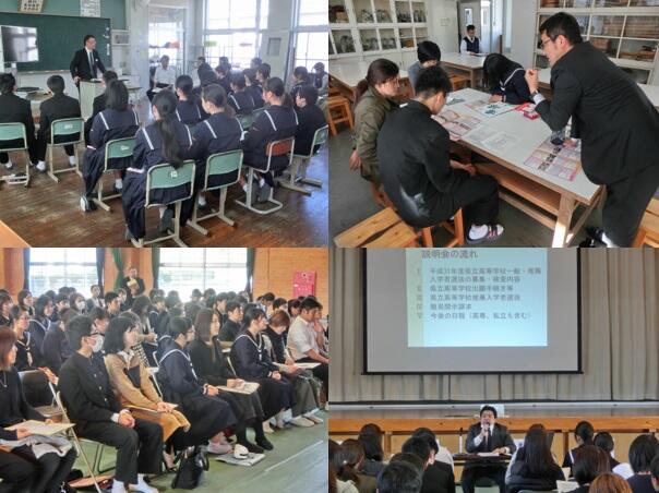 11月2日(金)、3年生を対象に高校説明会、高校入試説明会を開催しました。この日は、都城地区内を中心に11の高校の先生方に来校していただきました。またお仕事でお忙しい中、多くの保護者が来校し、子どもと一緒に説明を聞きました。