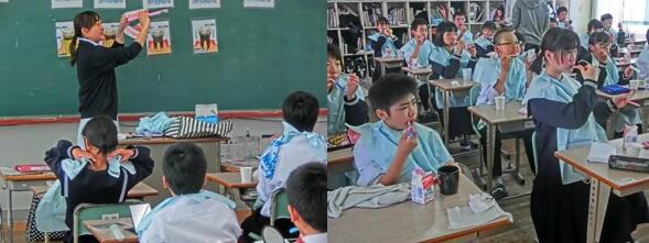 11月7日(水)、トキワ医院の先生をお招きし、1年生を対象に歯磨き指導をしていただきました。目的は、「口腔衛生の重要性について学ぶとともに、むし歯や歯肉炎予防には歯磨きが大切であることを理解する。」、「正しい歯磨きができるように、むし歯や歯周病を積極的に予防しようとする態度を育てる。」ことです。