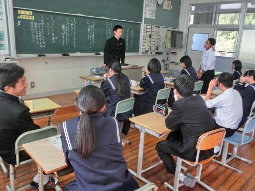 11月26日(月)、1年1組で道徳の研究授業を実施しました。28日(水)に本校で開催される都城市・三股町合同教育研究会中学校道徳部会の授業研究会へ向けての最終調整と初任者研修を兼ねての授業研究会でした。