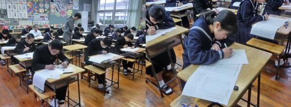 期末テストが終われば、2年生は修学旅行、ロードレース・駅伝大会、そして冬休みと楽しみが続きます。しかし、うかれることなく、テストの反省をしっかりやって、冬休みや3学期の学習に備えて欲しいと思います。特に3年生、入試は目前です!数学検定
