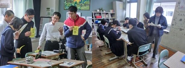 先週は2年2組で同じテーマで授業をしましたが、当然ながら生徒の実態が違うため、指導に苦労する場面もありました。しかし、班活動をとり入れたり、ロールプレイをとり入れたりと工夫をすることによって、生徒は意欲的に活動していました。