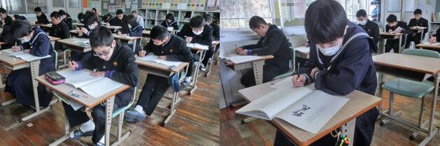 3年生に進級すると、4月に国語、数学、英語、生活状況についてのテストや調査が実施されますが、今回は、国語と数学の問題に挑戦しました。本番のテストさながらの緊張した雰囲気の中で、生徒は真剣に取り組んでいました。
