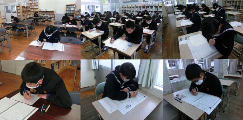 1月31日(金)、漢字検定試験を放課後実施しました。この日は、準2級に1名、3級に21名、4級に6名、5級に1名、計29名の生徒が受験しました。準2級に挑戦したのは、何と1年生でした。会場は緊張した空気が漂っており、生徒は最後まで問題に取り組んでいました。