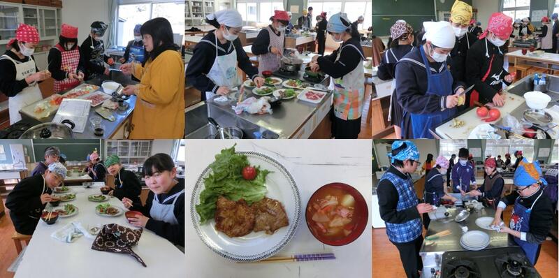1月29日(水)、1年2組が家庭科の調理実習に取り組みました。作ったのは先週の1年1組と同じ、豚の生姜焼きとミネストローネの2品です。班で役割を分担しながら要領よく作業を進め、時間内に実食と後片付けを済ませることができました。どの班もおいしくできていたようです。