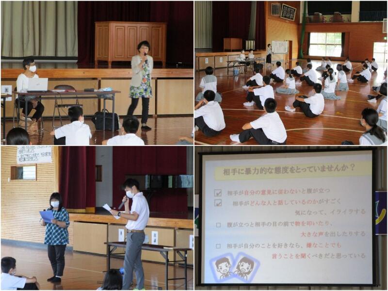 7月8日(水)、3年生を対象に性に関する講話がありました。NPO法人ハートスペースMより、佐藤先生、萩原先生の2名の講師の先生を招き、望ましい関係の作り方など、大切な話をたくさんしてくださいました。デートDVについての話では、DVという言葉は知っている生徒も多かったですが、詳しく知っている生徒はあまりいません。デートDVは交際相手暴力という意味ですが、ただ殴る、蹴るといった身体的な暴力だけを指すものではありません。暴力には、人前でバカにしたり、携帯電話やメールを細かくチェックして、行動を監視したりする精神的暴力や、性行為の強要などの性的暴力も含まれます。生徒も知らないことも多く、とても勉強になりました。また、途中で笠牟田先生と中村先生のロールプレイもあり、とても勉強になる1時間でした。望ましい交際のあり方、人間関係の作り方を考え、自分も相手も大切にし、傷つけないようにしたいです。