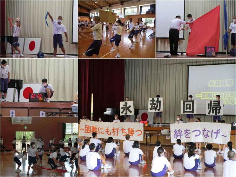 『永劫回帰~困難にも打ち勝つ絆をつなげ~』となりました。永劫回帰とは宇宙は永遠に循環運動を繰り返すものであるから、人間は今の一瞬一瞬を大切に生きるべきであるという意味です。今年は新型コロナの影響で行事がなくなったり縮小されたりということがありました。そのような中、体育大会は開催されますが、今まで通りの形とはいかないかもしれません。しかし、自分たちにできる精一杯のことはやろうという意思が感じられるすばらしいスローガンだと思います。