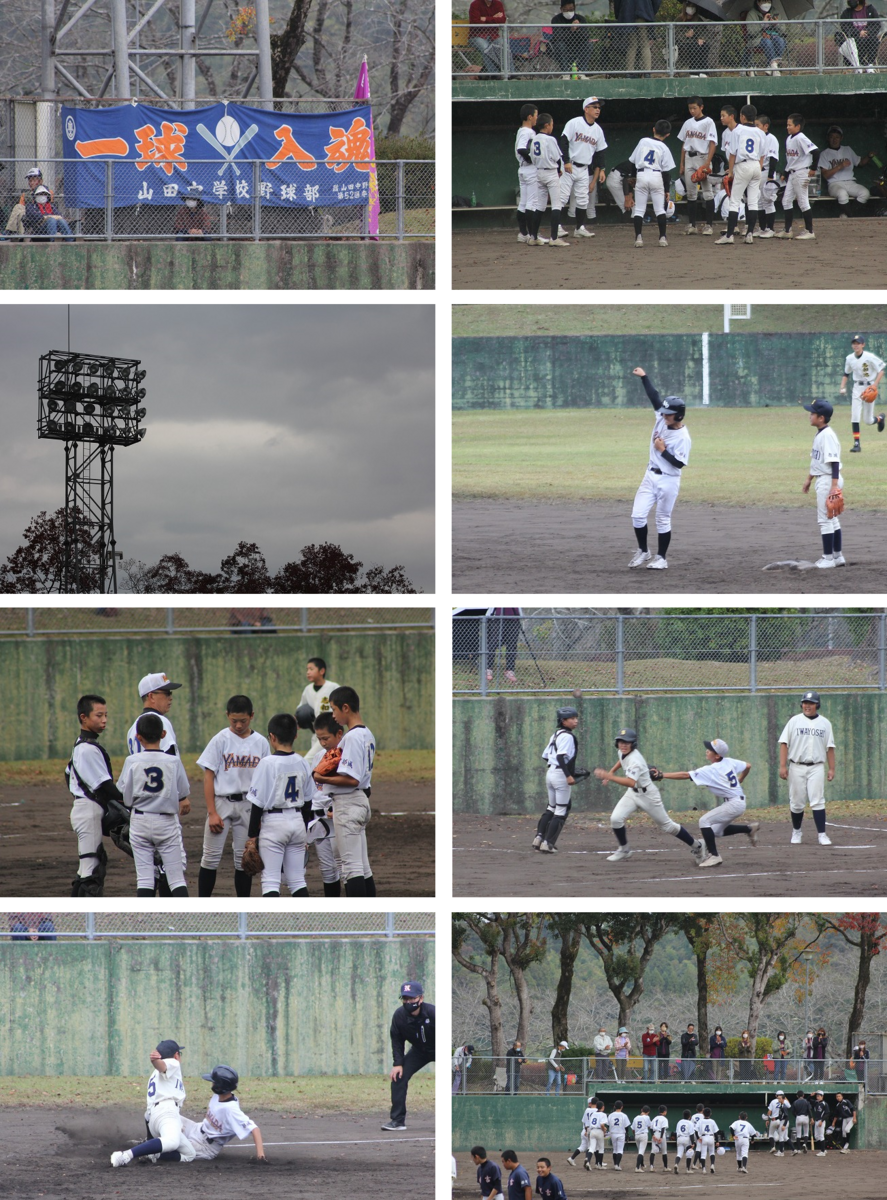 二回戦は、後攻め。1回の裏にチャンスを迎えましたが得点とはならず、3回まで0対0の好勝負となりました。4回に1点を取って先行したのは山田中でしたが、5回表に3点を取られて逆転を許してしまいました。その後、両校とも良い打球は飛ぶものの点には結びつかず、1対3で敗退となりました。