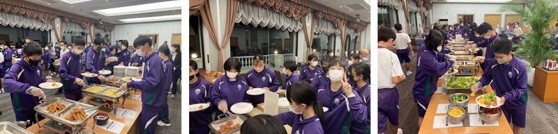 ホテルに着いた2年生は、部屋に入って着替えを済ませ、18時には夕食。ビュッフェで思い思いに好きな料理を食べていました。デザートのチョコフォンデュも美味しそうでした。