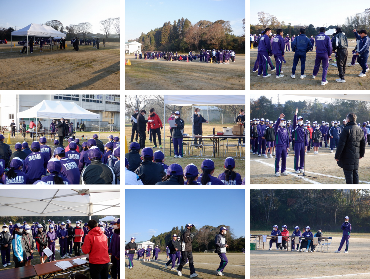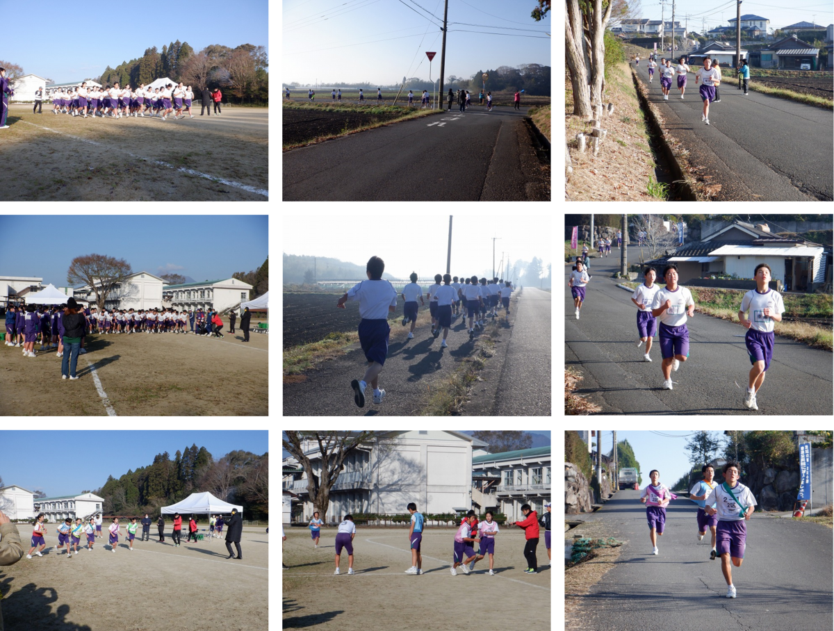 12月9日(土)、駅伝ロードレース大会が行われました。各学級から選抜した男女6人で競う学級対抗駅伝の部とその他全校生徒によるロードレースの部がありますが、本校では、学年関係なしに競い合います。ロードレースは、個人の表彰だけでなく、学級全員の結果を総合した学級表彰もあるため、学級全員が一丸となって取り組みます。※写真1段目