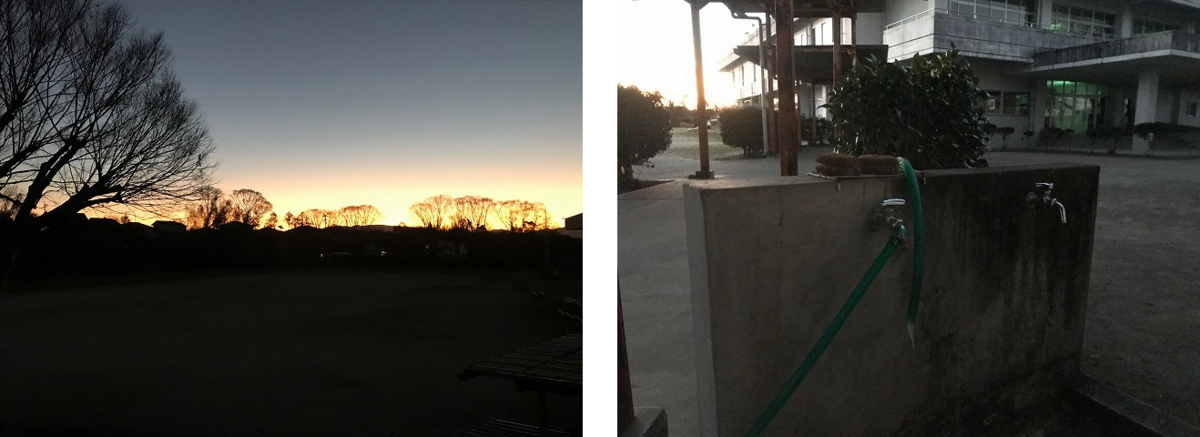 新年2日目となる1月5日(木)は、野球部、女子バレーボール部、卓球部、サッカー部、男子テニス部が令和5年の練習初日を迎えました。今朝の冷え込みも厳しく、校舎を開錠した時の気温は-4℃。日の出の時間、東の空はきれいな朝焼けが見られました。※写真左