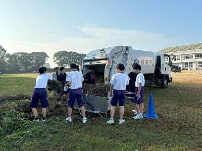 運動場や中庭の草刈りなどを行い、2学期に向けた環境整備ができました。