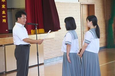 また、南九州小編成吹奏楽コンテストで金賞を獲得した吹奏楽部を表彰しました。