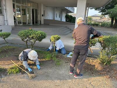 運動場や中庭の草刈りなどを行い、2学期に向けた環境整備ができました。