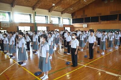 始業式では、4名の代表者が1学期の反省をふまえて2学期の目標を発表しました。