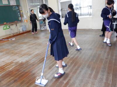 12月24日(水)、学校施設への感謝の気持ちを込めながら、2学期最後の大清掃を行いました。また、放課後には、各クラスの生活委員会が残り、教室床のワックスがけも行ってくれました。新年を気持ちよく迎える準備ができて、本当によかったです。