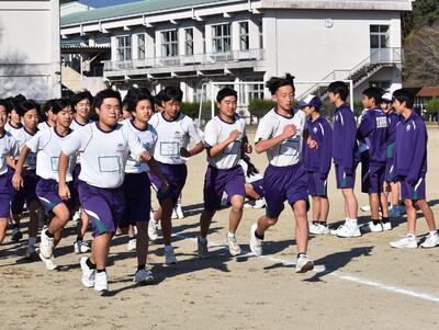 12月12日(金)、穏やかな晴れの天気に恵まれ、山田中伝統の校内ロードレース・駅伝大会が開催されました。各学級6名の選抜メンバーで構成する駅伝、その他の生徒が参加するロードレースは、いずれも2.0kmで争われました。