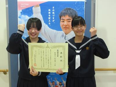 当日は、3人で発表する予定でしたが、体調不良で参加できなかった友人の分まで頑張って発表してくれました。最優秀賞という形で、努力が報われて本当に良かったです。また、熱心にご指導いただいた担当の先生方が生徒と一緒に涙を流されている姿にも感動しました。今回の受賞が、第2学年の生徒全員の自信につながってくれることを期待したいです。
