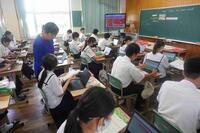 12月5日(金)に1年生は職業講座が行われました。日章学園高等学校から先生と高校生に来ていただき、いろいろな体験をさせていただきました。