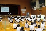 後半は、消毒などのコロナ対策をした上で、体育館で全校討議を行いました。